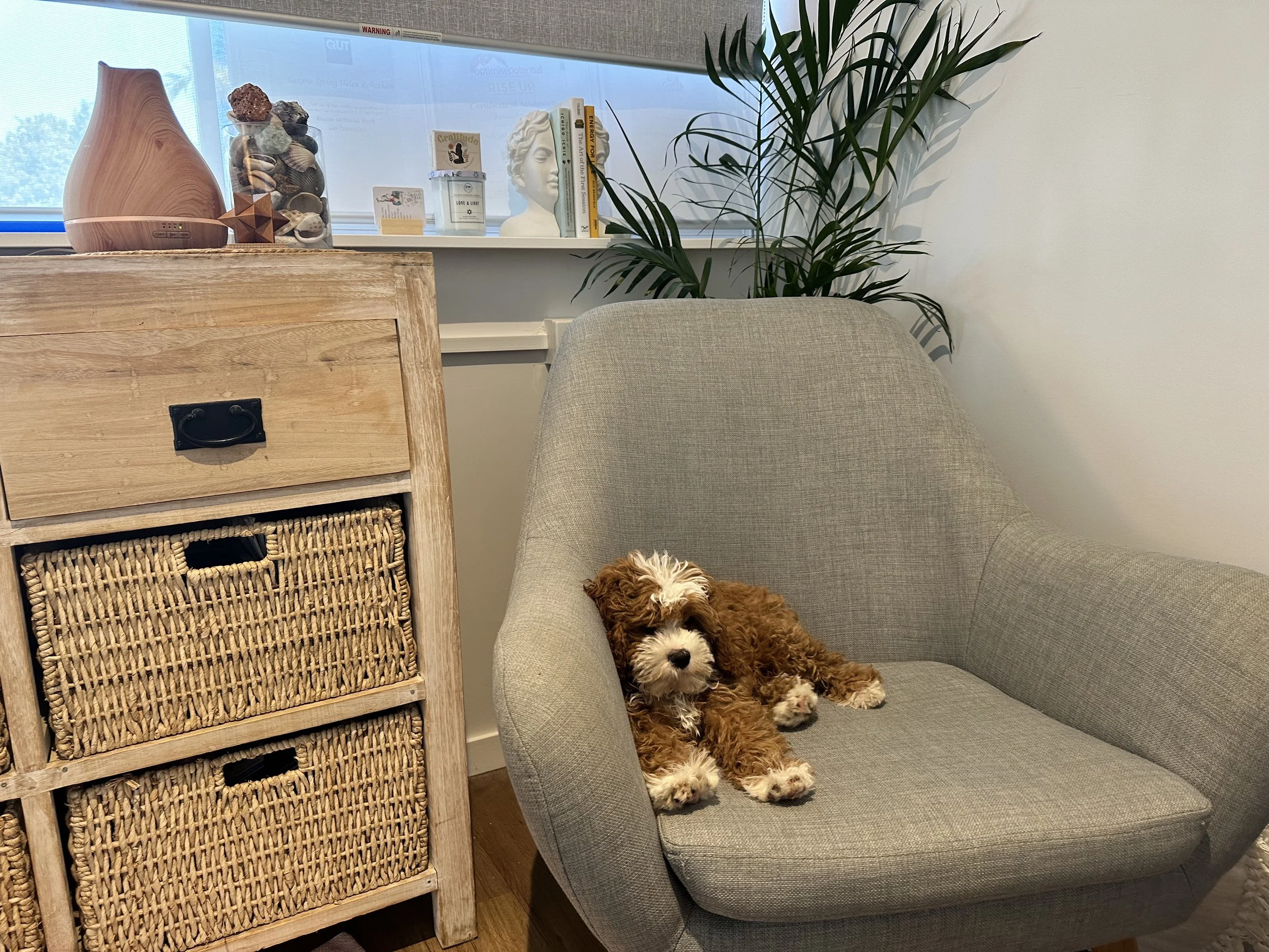 Let me know when you make the appointment, and we can discuss whether I’m the right therapist for you. If I am, then I have colleagues who would happily hang out with the pooches during your session.